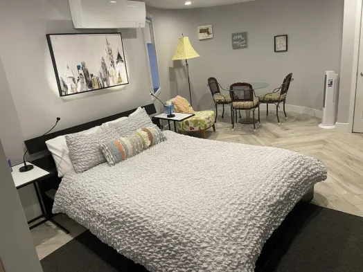Airy new apt for 2-6. Off-street parking. Walk to shops/restaurants/subway/bus