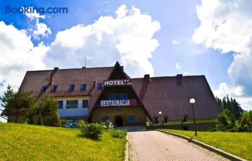 Comfortable hotel in Nowy Targ with air-conditioned rooms and convenient amenities like free wifi and a restaurant.
