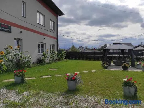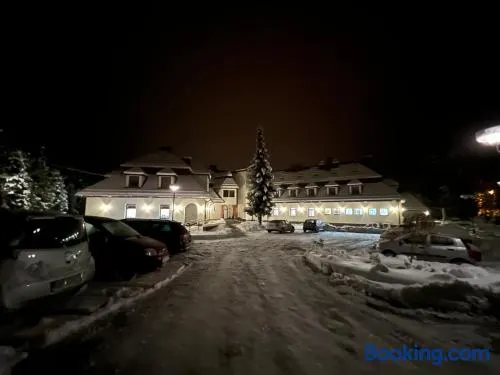 Comfortable hotel in Nowy Targ with air-conditioned rooms and convenient amenities like free wifi and a restaurant.