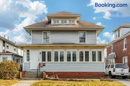 Relax in a cozy bed and breakfast with a hot tub, arcade games, and complimentary breakfast in Akron's Highland Square.