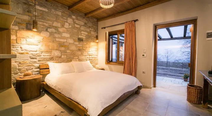 Experience luxury with jetted bathtubs, eco-friendly amenities, and Greek cuisine near the beach in Tsagarada.