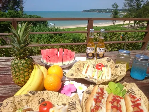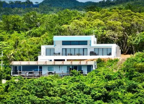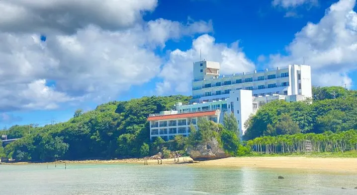 Beachfront resort with spacious rooms, kitchen facilities, and outdoor spaces in Motobu, Japan.