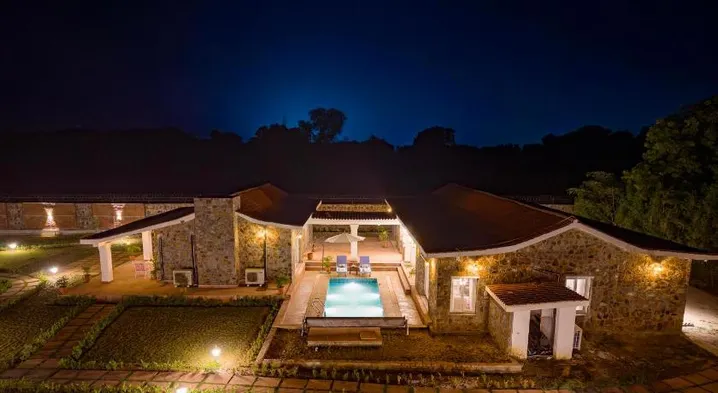 Luxury resort with outdoor pool, 24-hour health club, and on-site dining near Damdama Lake.