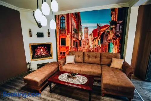 Centrally located apartments in Batumi with 5 restaurants, beach access, and a fitness center nearby.