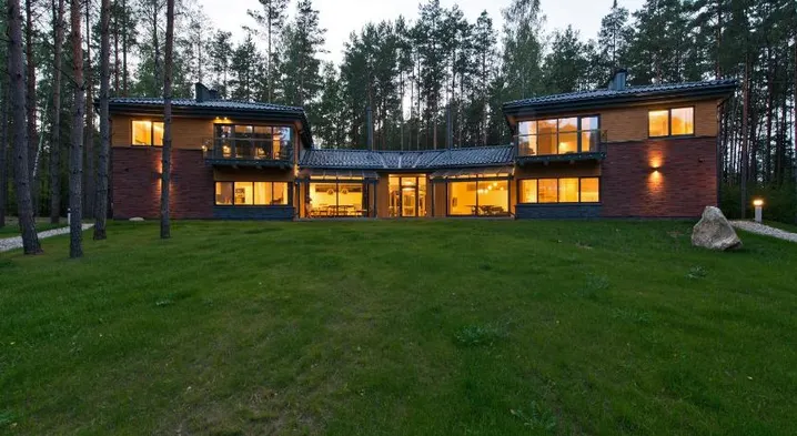 Family house offers garden views, a terrace, outdoor fireplace, and family rooms near Druskininkai's attractions.