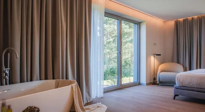 Luxurious hotel with spa services, indoor pool, and ski-in/ski-out access in the heart of Druskininkai.