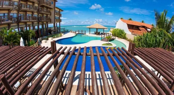 Luxury resort with 2 outdoor swimming pools, spa services, and international dining options in Maceió's Jatiúca district.