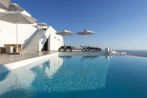 Enjoy a seasonal outdoor pool and express check-in at this stylish holiday home in Fira, Santorini.