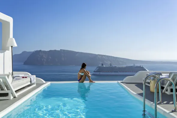 Luxury villa in Oia with stunning views, swimming pool, and adults-only atmosphere for a serene getaway.