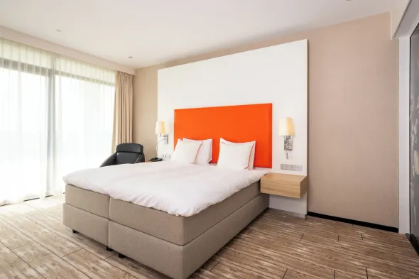 Luxury hotel with indoor pool, hot tub, sauna, and four restaurants in central Almelo, steps from Grote Kerk Church.
