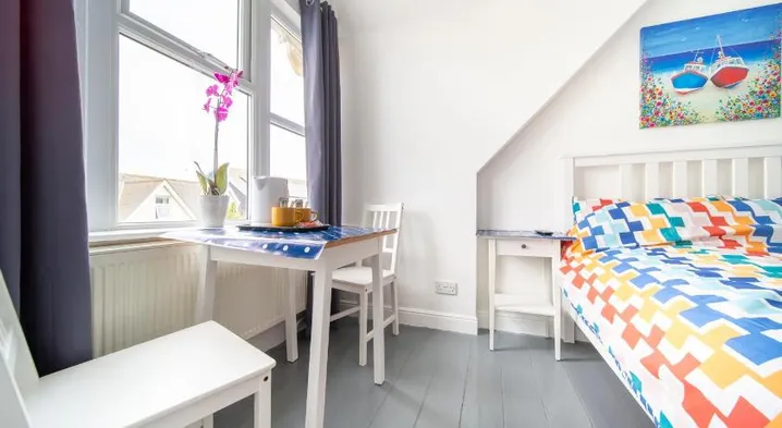Centrally located hotel with stunning beach views, terrace, garden, and on-site dining in Newquay.