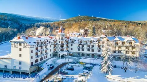 Relax in a 4-star hotel with an indoor pool, spa services, and a restaurant in Swieradów-Zdrój.