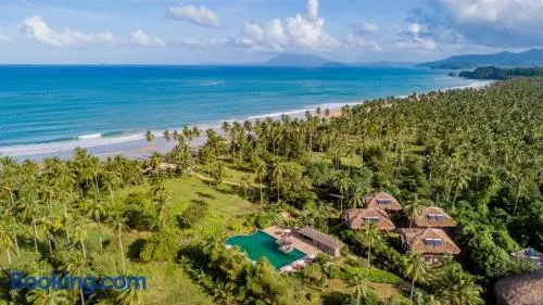 Experience beachfront luxury with a swimming pool, spa services, and an excellent in-house restaurant near Sabang Beach.