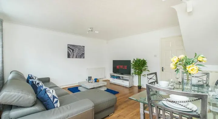 Modern apartment with garden, free parking, and three bathrooms in Dartford.