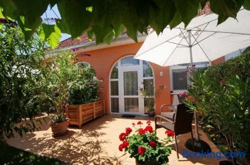Luxurious apartment with a garden, terrace, and free parking in Gyula, Hungary.
