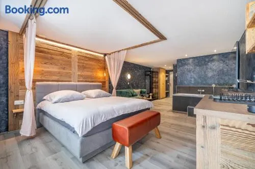 Relax at the spa hotel with 2 indoor and 2 outdoor swimming pools, just steps from Alpentherme Thermal Baths.