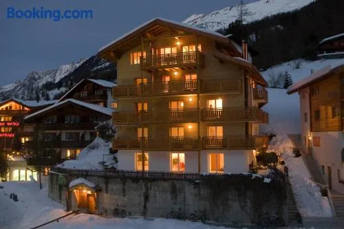 Experience luxury and relaxation with a spa, hot tub, and superb dining in the heart of Zermatt.