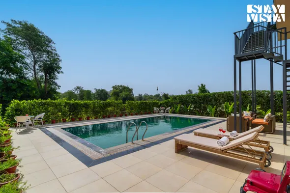 Hotels with gardens in Bhiwadi often provide a variety of amenities designed to enhance guest comfort and relaxation. Common features include spacious outdoor areas perfect for leisurely strolls or yoga sessions, well-maintained gardens filled with local flora, and sometimes even dining options that allow for al fresco meals in a serene environment. Guests may also find facilities such as a swimming pool adjacent to the garden, picnic spots, and spaces for events or social gatherings, all set within a peaceful natural backdrop.