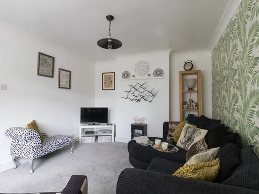 Modern cottage with a garden, near Weymouth beach, accommodating up to 6 guests and featuring a first-floor balcony.