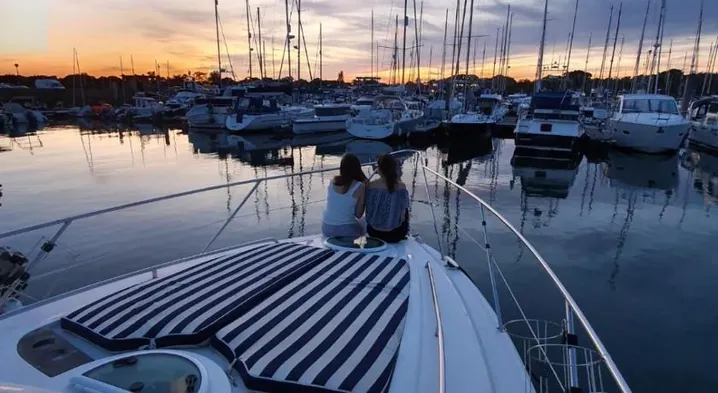 Boat accommodation with restaurant, free parking, terrace, and water park access in Lymington.