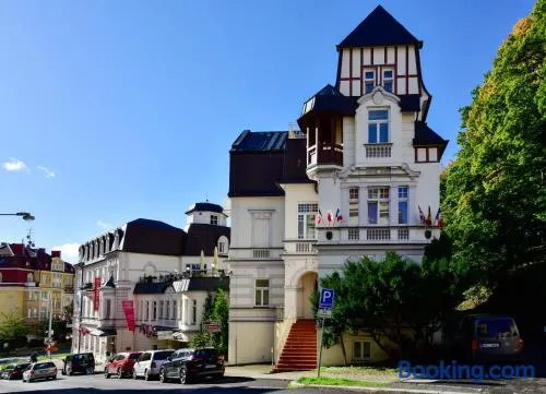 Relax at this spa hotel featuring an indoor pool, sauna, and wellness treatments in the heart of Marianske Lazne.