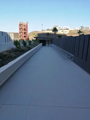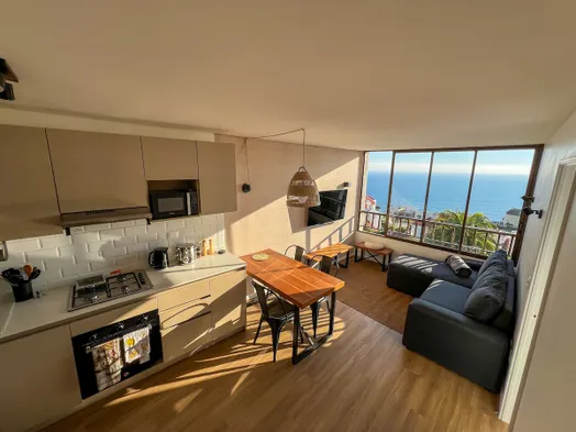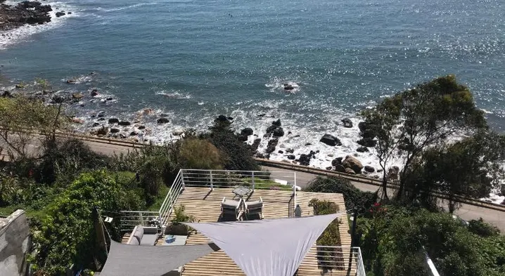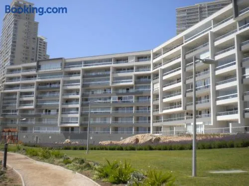 Luxury apartment with swimming pools, sauna, hot tub, and beach sun loungers in Concon, Chile.