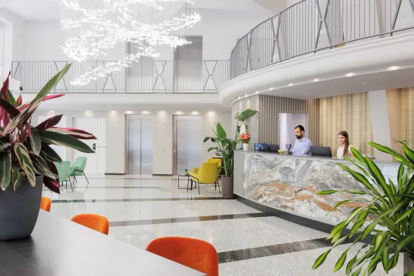 Centrally located hotel in Milan with a 24-hour fitness center and terrace for relaxation.
