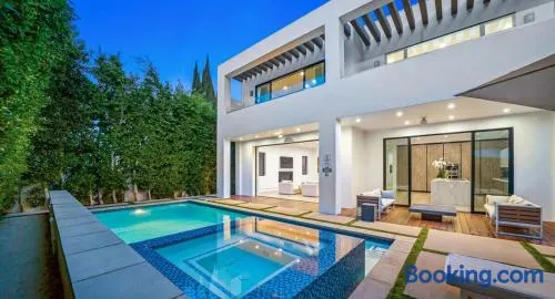 Luxury villa with swimming pool, hot tub, and free parking in Santa Monica, California.