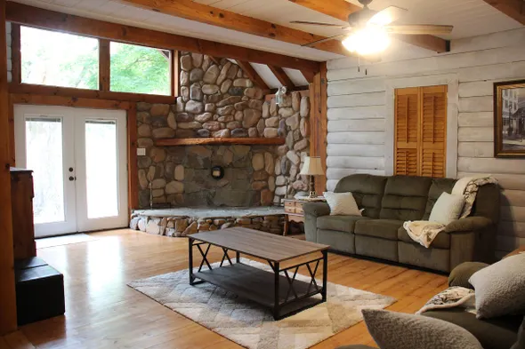 Experience a unique log home with hot tub, arcade games, and stunning water views in Englewood, Tennessee.