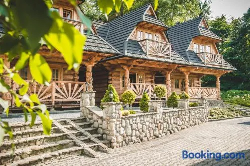 Luxury hotel with spa, indoor pool, and Polish cuisine restaurant in Zakopane, close to Krupowki Street and Tatra Museum.