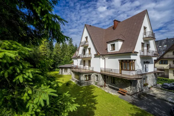 Family-friendly pension with indoor pool, complimentary water park, and tennis courts in Zakopane's national park.
