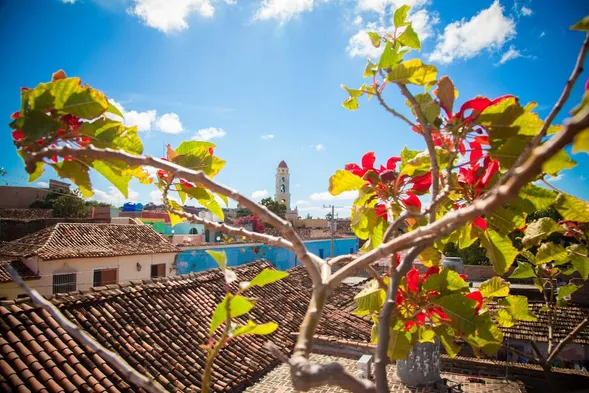 Hotel with a rooftop terrace and restaurant, located in the city center of Trinidad, Cuba.