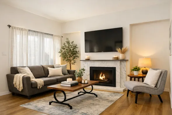 Bright retreat w/ fire place & atrium
