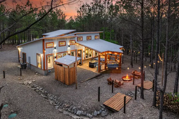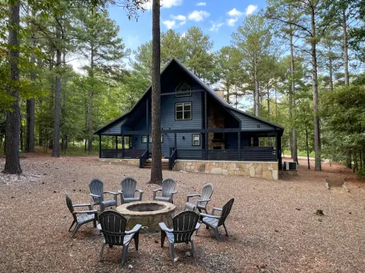 Luxury cabin with private jacuzzi, outdoor firepit, and stunning lake views in Broken Bow. Perfect for a romantic getaway.