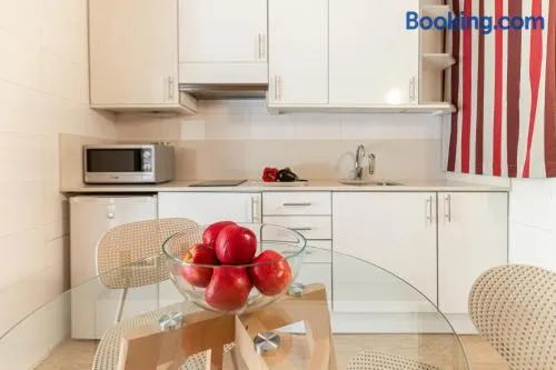 Modern apartment with kitchens, multilingual staff, and convenient access to Sagrada Familia and Hospital de Sant Pau.
