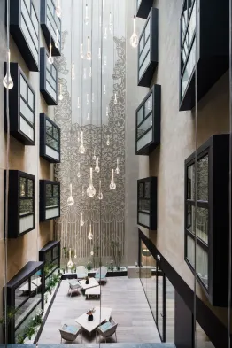 Luxury hotel with a spa, seasonal outdoor pool, and stunning city views in Barcelona's Poblenou district.