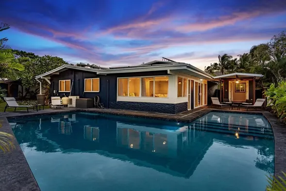 Enjoy a spacious vacation home in Kailua with a swimming pool, spa, and modern amenities just minutes from the beach.