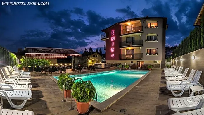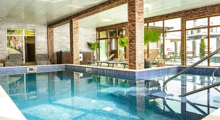Luxury hotel with spa and wellness center, indoor and outdoor pools, and spacious rooms in Velingrad, Bulgaria.