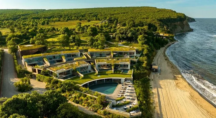 Luxury hotel with spa, private beach, outdoor pool, and tennis courts in Burgas city center, steps from Sea Gardens.