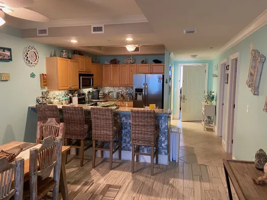 Beautiful Gulf Front Condo with well-stocked kitchen and well-appointed balcony.