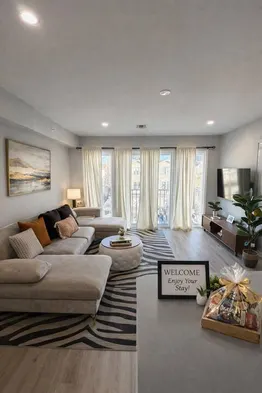 Modern 2BR 2BA Condo Sleeps 8 with Gym Laundry 20 Min to NYC