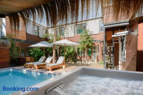 Relax at this adults-only hotel featuring a full-service spa, outdoor pool, and hot tub in Providencia, Santiago.