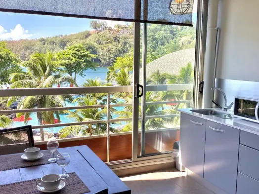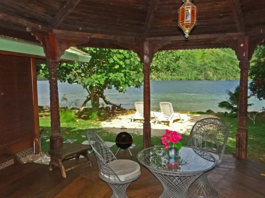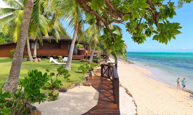 Experience luxury in this over water bungalow with air conditioning, stunning lagoon views, and access to snorkeling and kayaking.