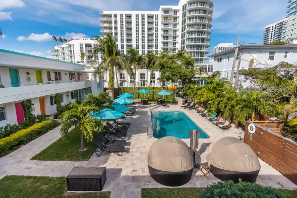 Beachfront hotel with outdoor pool, restaurant, and business center in Fort Lauderdale's vibrant East Beach area.