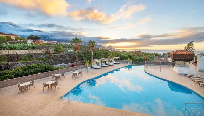 Luxury hotel with outdoor and indoor pools, full-service spa, and stunning views in Puerto de la Cruz.