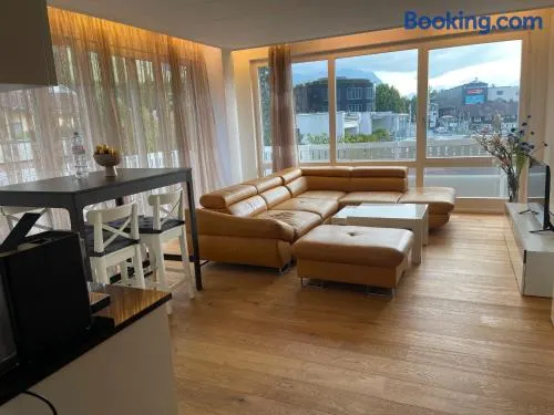 Luxury penthouse in Schaan with two bedrooms, a terrace, and a fully equipped kitchen, perfect for family gatherings.