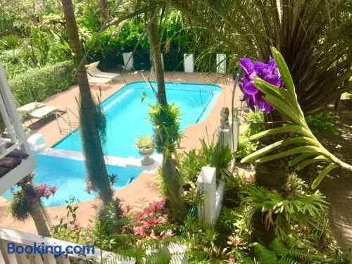 Guesthouse with outdoor pool, complimentary breakfast, and air-conditioned rooms with private balconies in St. Lucia.