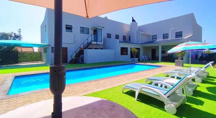 Beachfront resort with outdoor pool, waterslide, and nearby attractions like Diaz Beach and Hartenbos Seefront.