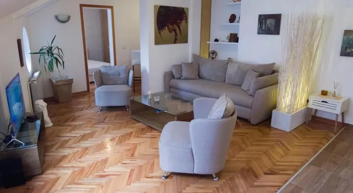 Renovated apartment with a garden, terrace, and family rooms, located near King Milan Square in Niš.