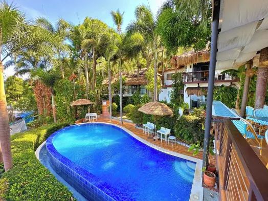 Luxury resort with 3 outdoor swimming pools, spa services, and vegan dining options in Lipa City.